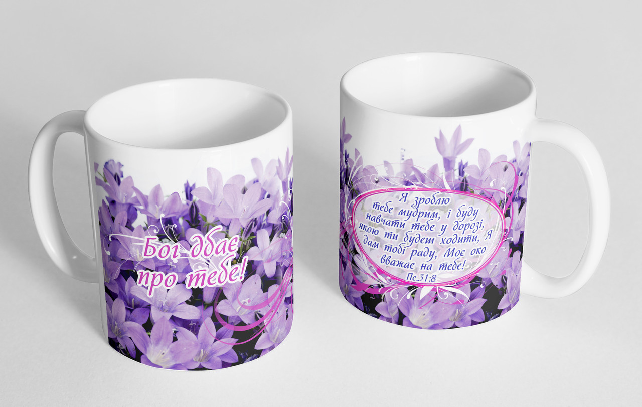 Надпис: Бог дбає про тебе! Я зроблю тебе мудрим, і буду навчати тебе у дорозі, якою ти будеш ходити, Я дам тобі раду, Моє око вважає на тебе! Пс.31:8